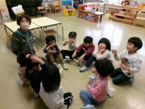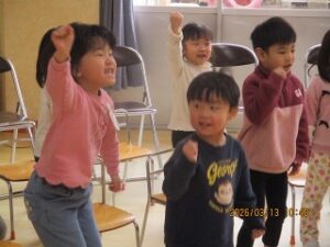 今日は、年長さんがいなかったのですが、年少さんと年中さんは、心を込めて歌う姿がありました。大好きな年長さんへの想いがより一層膨らんでいるように感じました。(みんなの歌声、みなさんにも聴いていただきたいなあ)
