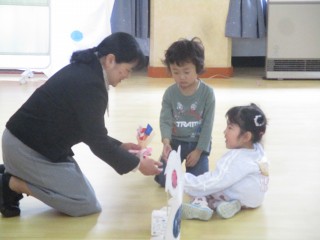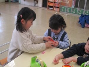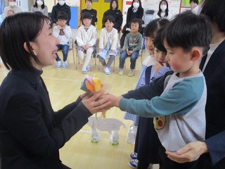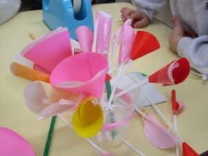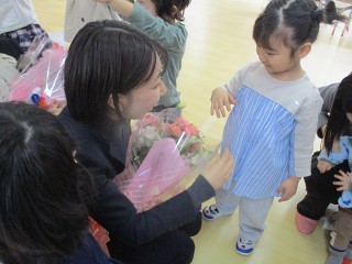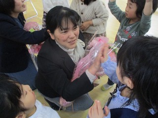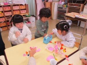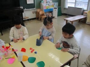 登園した後、みんなでお世話になった先生に心を込めてお花を作りました。