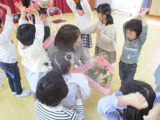 4名の先生、ありがとうございました。西幼稚園のこと、みんなのこと、これからも応援してください!