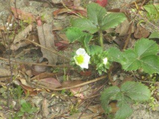 おわかれはさみしいけれど、みんなの希望の春がやってきます。みんなのことを応援するように、玄関わきに小さなイチゴの花が咲いていました。みんなに、楽しい春がきますように☆