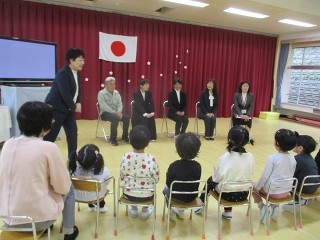 進級式では、みんなにピカピカの新しい名札を渡しました。保育室に戻ってから、園長先生から一人ずつつけてもらいました。すると、みんなはとてもうれしそうにしていました。