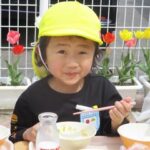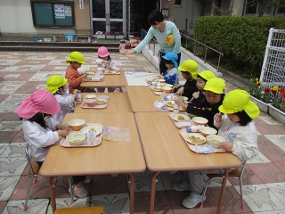 お外で食べる給食!とても楽しい雰囲気で食べました。