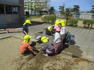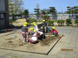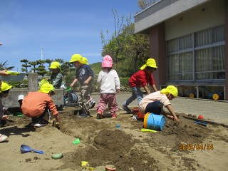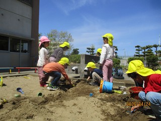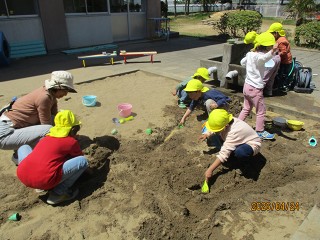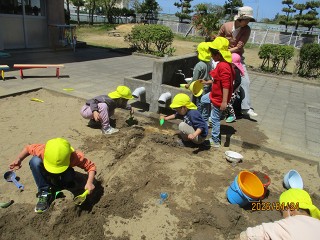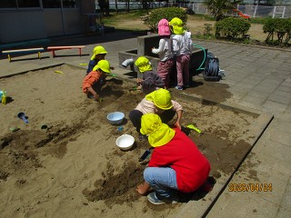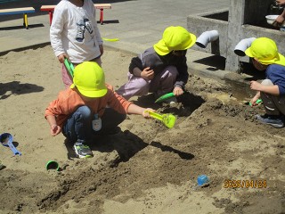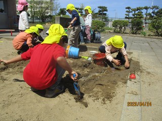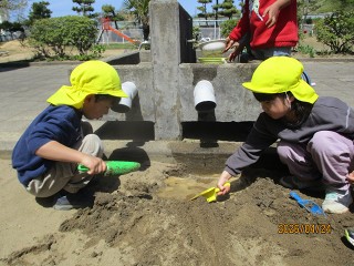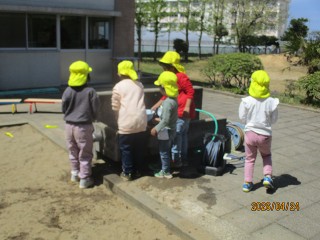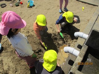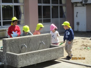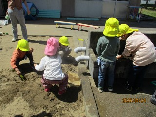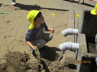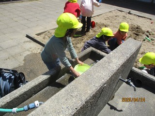 「水流れるよ~」「いいよ~」と年長さんたちが声をかけ始めました。