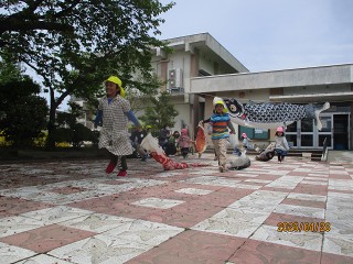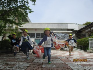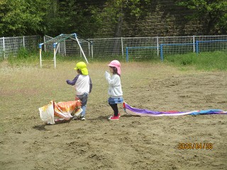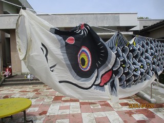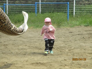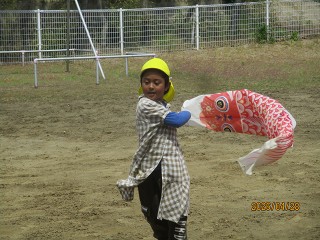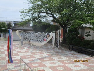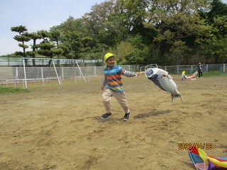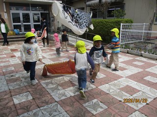 先生が「お友達連れてくるね」と言って、こいのぼりを連れてきてくれました。