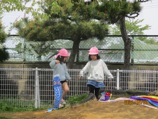 さわやかな風がふく季節。野菜の苗に水やりをしたり、かわいい花を見つけたり、プールの足洗い場の水たまりにいるオタマジャクシを見たりしていると・・・・