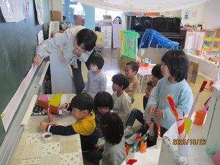 今日も昨日に引き続き、給食に「大豆」が入っていました。昨日、大豆のお話を聴いたみんなは、今日はどこに大豆が入っているかな?と先生と考えていました。味噌、あぶらあげ、豆腐、ビーンズサラダ…探してみると、いろいろなものに入っていることがわかりました。