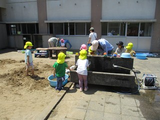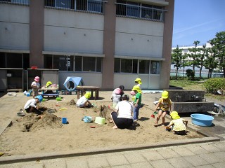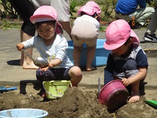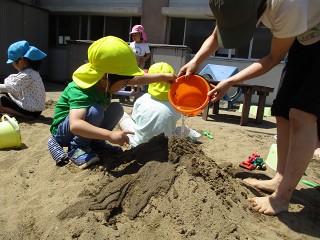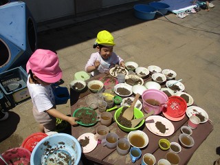 ダイナミックに思い切り砂や泥、水で楽しむ中で、今日も子供たちは自分なりに考えたことや思いついたことを試したり、繰り返したりしてたくさんのことを学んでいます。