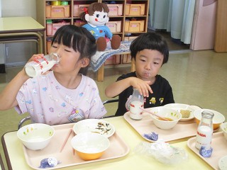 2学期から年中さんも瓶の牛乳になってとってもうれしそうです。
