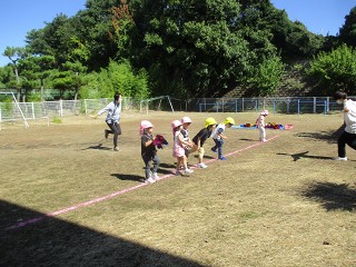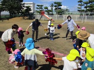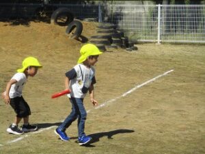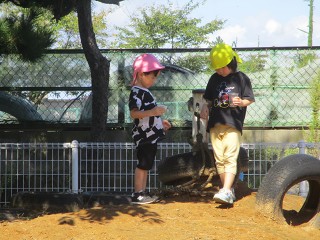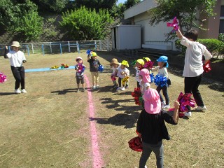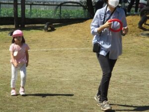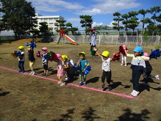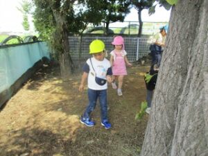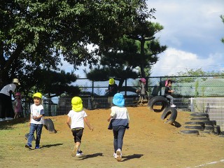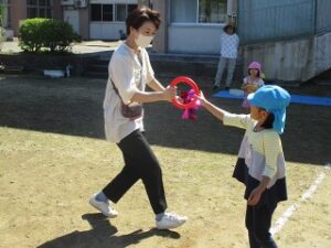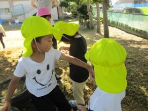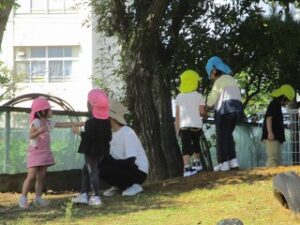 今日はとってもすっきりとしたいいお天気でした。みんなは朝から外へ。外に出た瞬間、「外、気持ちいい~!」という声が聴こえてきました。