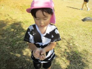 「あっ!ドングリ見つけた!」みんなはドングリを見つけることに夢中になっていました。