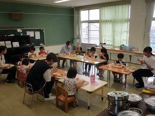 たくさん遊んだ後の給食はやっぱりおいしい!