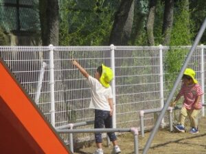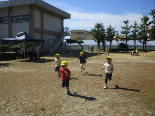 今日も快晴。みんなは外へ。今日も思い切り走ったり、踊ったりして、運動会気分。