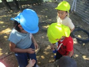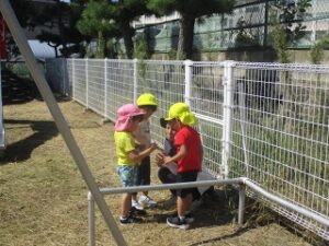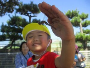 みんなの楽しそうな様子に誘われて、トンボたちが園庭にたくさん飛んでいました。