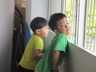 今日は、とてもさわやかな風が吹いています。子どもたちは、遊びの途中、窓から吹いてくる風に思わず「あ~気持ちい~」と言っていました。