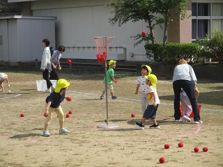 玉入れのコツを得て、どんどん上手になっているみんな。明日は会場のみなさんと一緒に楽しみます。