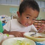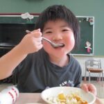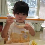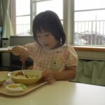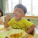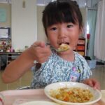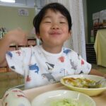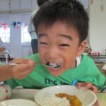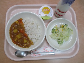 今日はみんなの大好きなカレーライス。十五夜の日が運動会の代休のため、デザートに少し早いですがお月見ゼリーも出ました。