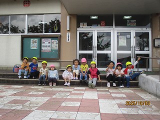消防署から戻り、バスを降りた直後のみんな…。楽しかった余韻がいっぱい広がっていました。