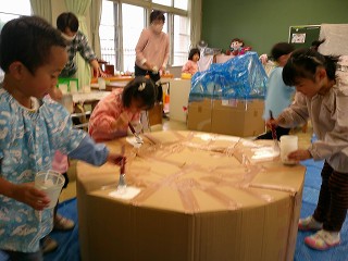 みんなの心のこもった、そして「幼稚園大好き!」の気持ちがつまったケーキ。どんなケーキになるかお楽しみに~!