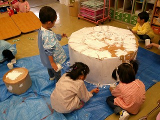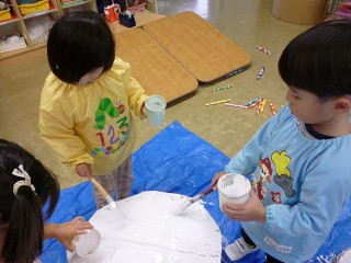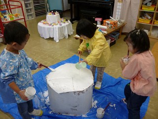 みんながクリーム(絵具)をたっぷり塗っていました。