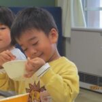 このケーキ、西幼稚園のお誕生日のお祝いのケーキなのです。11月7日に創立50周年記念式典が行われます。この日に向けて、みんなは幼稚園のお祝いの準備を進めています。