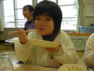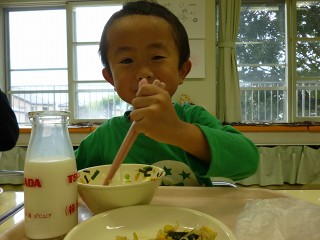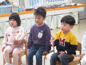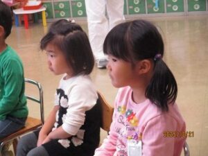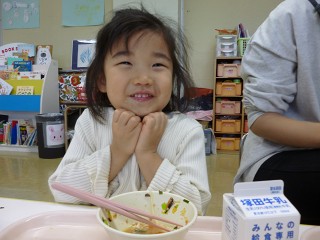 いいうんちが出るには、いろいろなものをたくさん食べて、たくさん遊ぶことが大切だそうです。子どもたちは、このお話を受けて、いつも以上にしっかりと給食を食べていました。