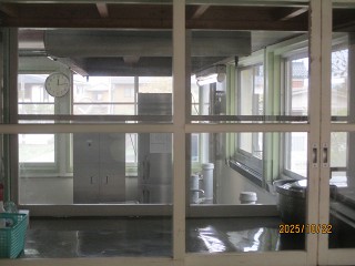 少しわかりづらいかと思いますが、この中が給食室です。ここで2人の調理員の先生がおいしい給食を作ってくれています。