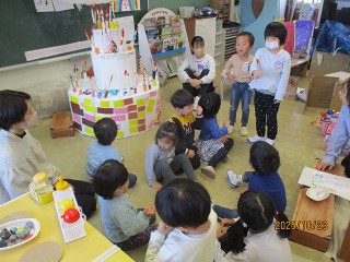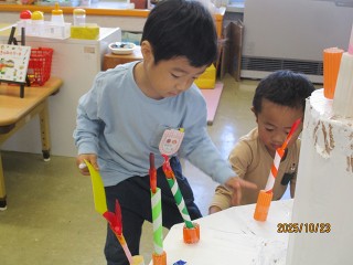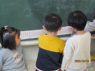 50本もいるから、みんなで力を合わせないといけない…そうお友達が話していました。作った数だけ、火をともす表でみんなで数えてみると…