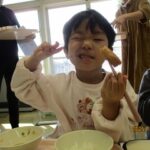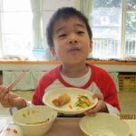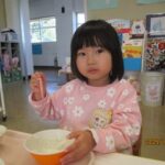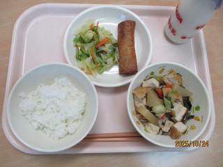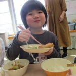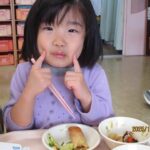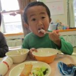 今日の給食は春巻き。おいしそうにモリモリ食べていました。
