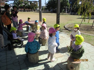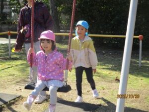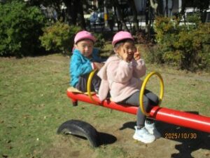 今日は久しぶりにおひさまのひかりが温かい日でした。おひさまの温かさを感じながら、みんなで近隣の公園にお散歩に行ってきました。