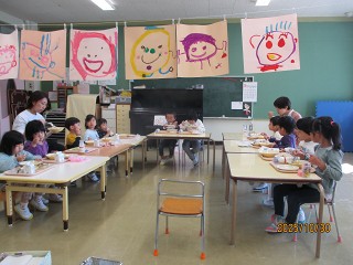 幼稚園に戻って、すぐに給食の時間に。たくさん遊んで、今日もたくさん食べました。