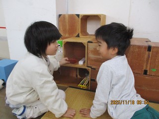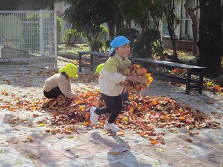 最近、年長さん、年中さん、年少さんで自然に楽しいことが始まることがたくさんあります。充実のとき。異年齢での関わりの中で子どもたちが育ち合っていることを実感する毎日です。