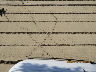 ん??昨日、2階から畑を見ていたら、お隣の畑にだれかの足跡を発見!
