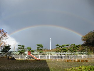 (今朝、西幼稚園に虹が!)時折差し込むおひさまの光がうれしい一日でした。