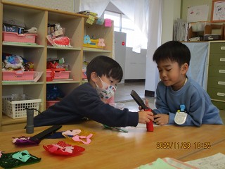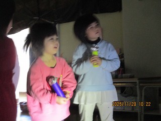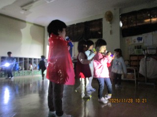 1学期からいろいろな場面で光と影に興味をもち、遊んできたみんな。光と影に再び関心をもって遊び始めました。そして、コンサートもはじまりました。