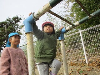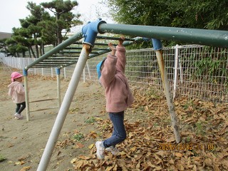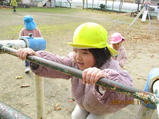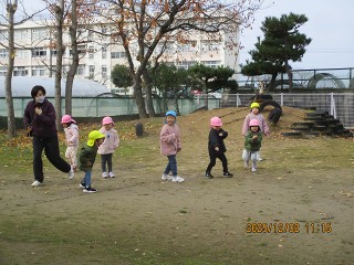 西幼稚園には広い園庭があります。子どもたちは園庭が大好き!今日も昨日に引き続き比較的暖かい日だったので、外で元気に遊びました。