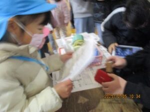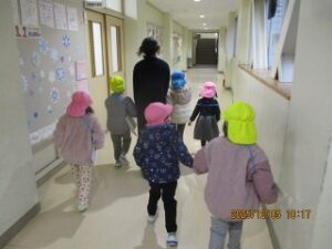 行くときは少しだけみぞれが降っていましたが、みんなは、楽しみな気持ちがいっぱいだったので、がんばって歩きました。