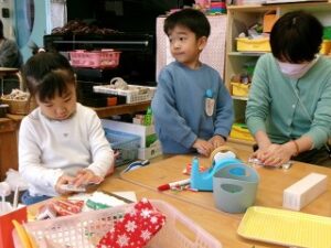 クリスマスまであと2週間。子どもたちの会話や遊びから「サンタさん」「トナカイ」「プレゼント」というキーワードがたくさん聴こえてきます。楽しそうに遊ぶみんなのことをサンタさんはきっと微笑みながらみているかもしれませんね。
