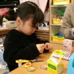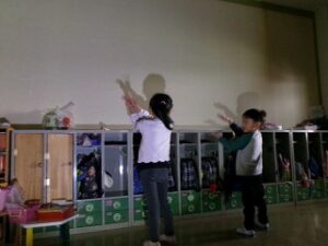 今日も「おもしろいっ!」をたくさん感じて、夢中で遊ぶみんなの姿がありました。懐中電灯で遊ぶお友達。自分の影が大きくなったり小さくなったり、2重になったりするのを発見。