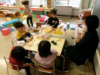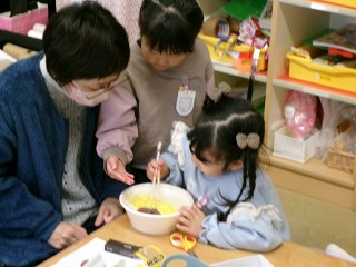 お隣の部屋では、おいしいものを作ったり、サンタさんのプレゼントを作ったりしているお友達がいました。