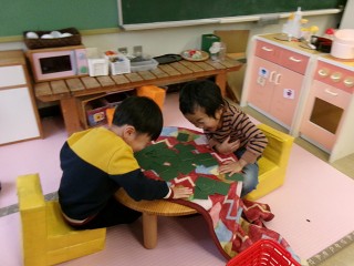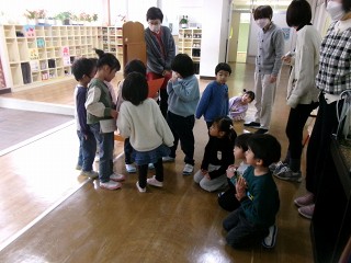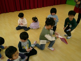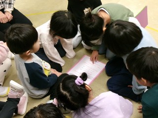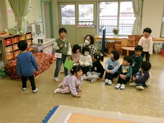 最初に年長さんが冬休み楽しかったことをお話しました。年少さんや年中さんの様子からも、冬休みがとても充実していたことが伝わってきました。