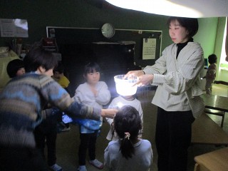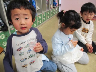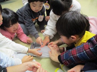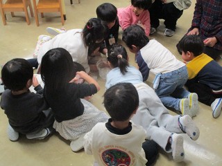 「ペンギンのいる南極の氷なんだよ。」というと、「え~!すごい!」「わあ~つるつるするよ。」と感動の声が次々とあがりました。このときの感動はとてもすごかったです。(その様子を私の言葉だけでうまく伝えられずもどかしいです)
