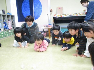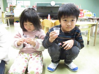 今日は1月うまれのお友達をお祝いするなかよしタイムの日でした(この次のブログもぜひご覧ください)。なかよしタイムの後、とても素敵な「氷」に出合いました。