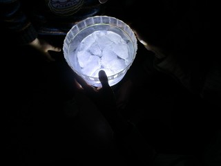 小さなプラスチックのコップに氷を入れてみました。すると・・・・