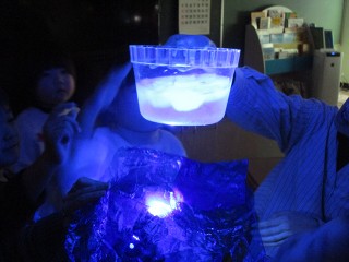 そして、この後、みんなの氷を1つの入れ物に集めて、下から見てみると、とても素敵!「海の中から氷を見ているみたい!」という声も。
