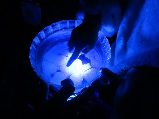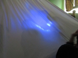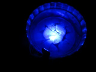 青のカラーセロファンを通して光をあててみました。すると、もっともっと海の世界のよう。