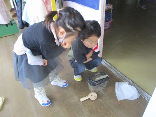 「先生クモがいる」…廊下でクモを見つけたお友達は、大切そうに虫かごへ。どうやらクモを飼うことにしたようです。