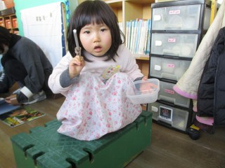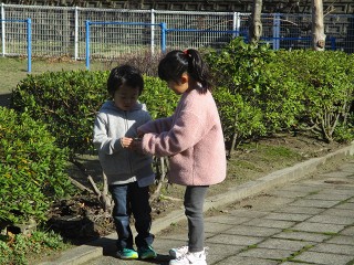 「緑の葉っぱが必要。枯れたは葉っぱじゃなくて緑の」そう言って咄嗟に園庭を見渡します。