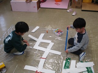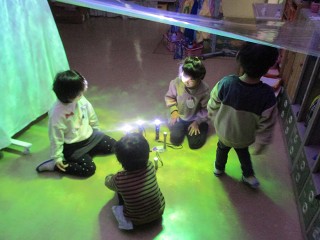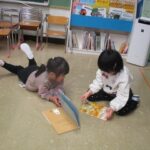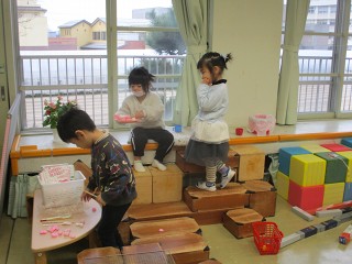 子どもたちにとって、何かのつもりで遊ぶとき、すぐにそこが水の中になったり森の中になったりして、楽しい世界が広がっていきます。楽しい世界に浸って。今日も夢中で遊んでいました。