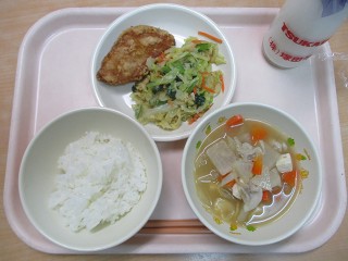 今日の給食。白身魚の竜田揚げは外はカリ、中はフワっとしていてとってもおいしかったですよ!