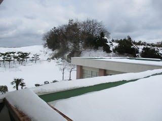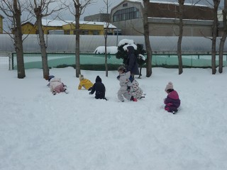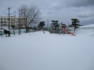 今シーズン一番の積雪。西幼稚園もあたり一面真っ白です。